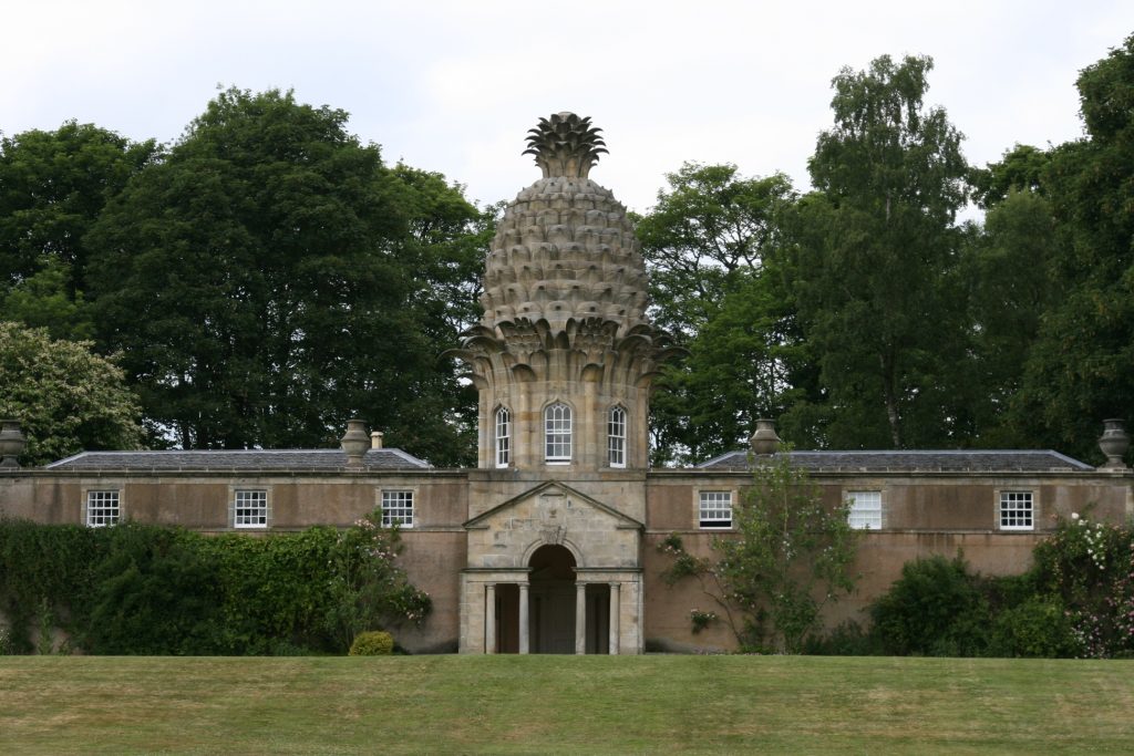ダンモア・パイナップルは、18世紀に第4代ダンモア伯ジョン・マーレイによって建てられた邸宅兼温室です。彼は、当時の植民地で見たパイナップルの象徴性に感銘を受け、邸宅の温室の上部に巨大なパイナップルを模したデザインを施しました。